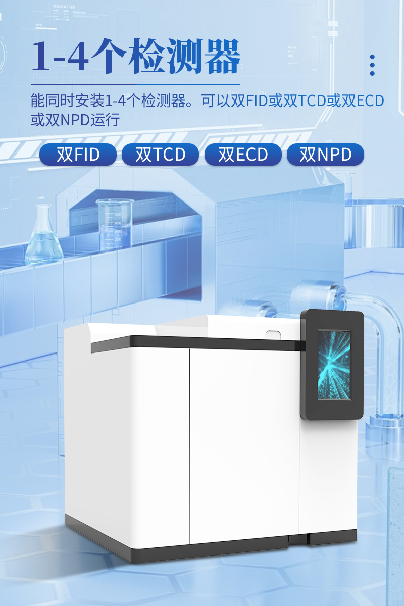 11.能同時(shí)安裝1-4個(gè)檢測(cè)器??梢噪pFID或雙TCD或雙ECD或雙NPD運(yùn)行。TCD帶有雙路柱后補(bǔ)充氣,故可單柱、雙柱、毛細(xì)管柱使用。