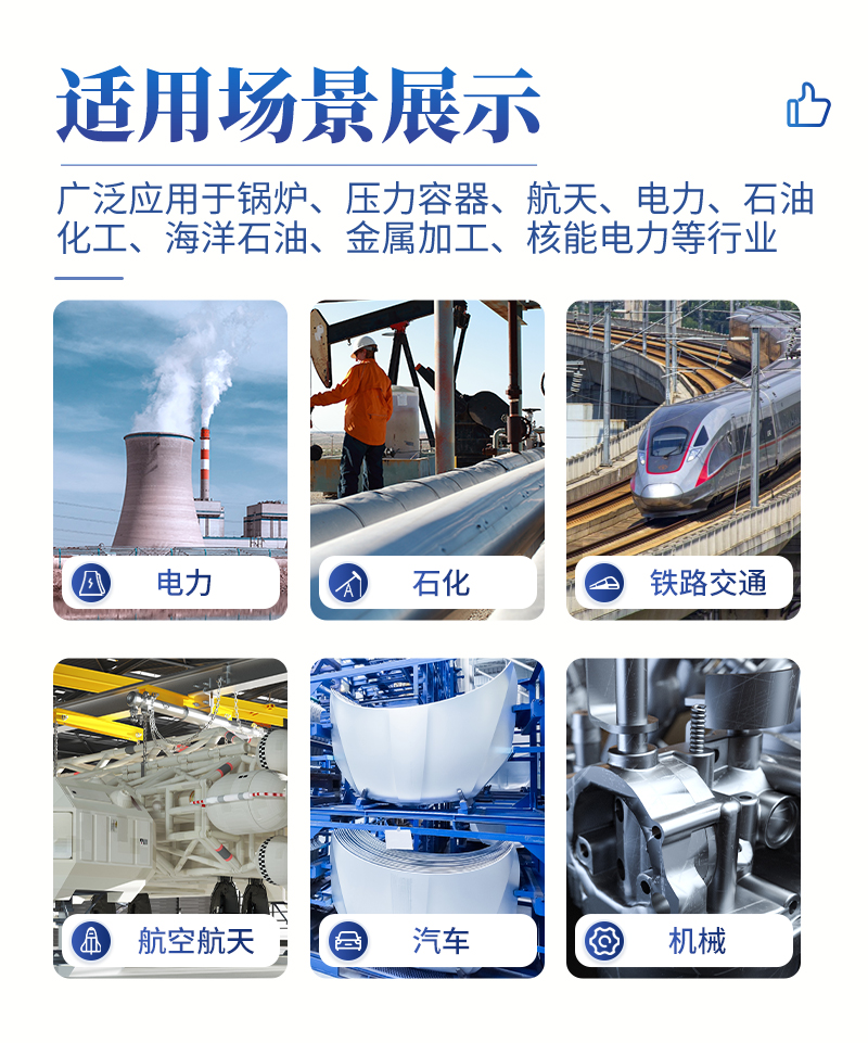 便攜式超聲波探傷儀能夠快速便捷、無損傷、準確地進行工件內(nèi)部多種缺陷如裂紋、焊縫、氣孔、砂眼、夾雜、折疊等的檢測、定位、評估及診斷,廣泛應(yīng)用于電力、石化、鍋爐壓力容器、鋼結(jié)構(gòu)、航空航天、鐵路交通、汽車、機械等領(lǐng)域。它是檢測行業(yè)的重要儀器。