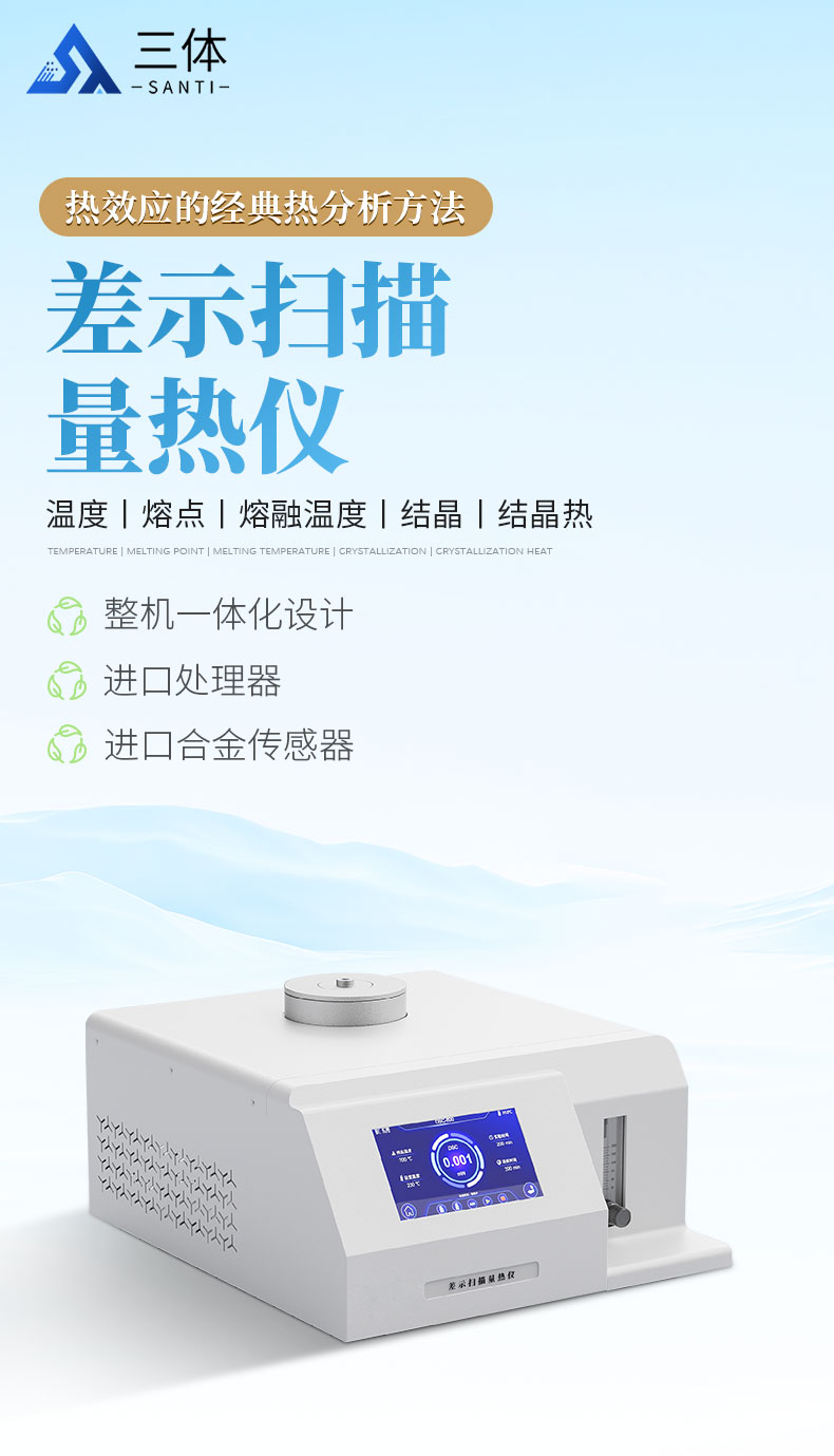 測量與熱量有關(guān)的物理、化學變化,如玻璃化轉(zhuǎn)變溫度、熔點、熔融溫度、結(jié)晶與結(jié)晶熱、相轉(zhuǎn)變反應熱,產(chǎn)品的熱穩(wěn)定性、固化/交聯(lián)、氧化誘導期等。