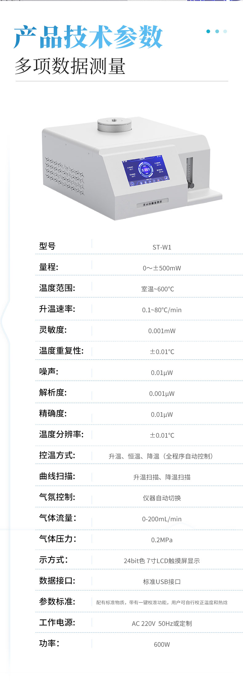 17.參數(shù)標準: 配有標準物質(zhì),帶有一鍵校準功能,用戶可自行校正溫度和熱焓