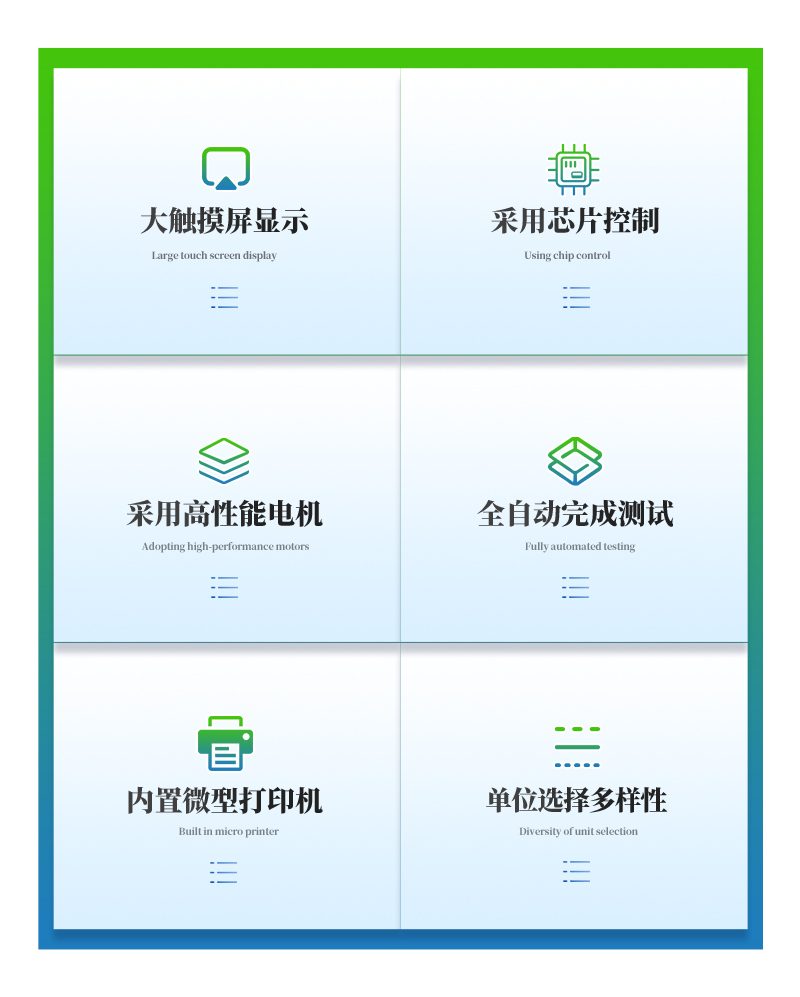 1、采用芯片控制,高精度測力傳感器,精度高。