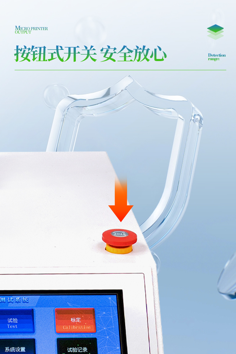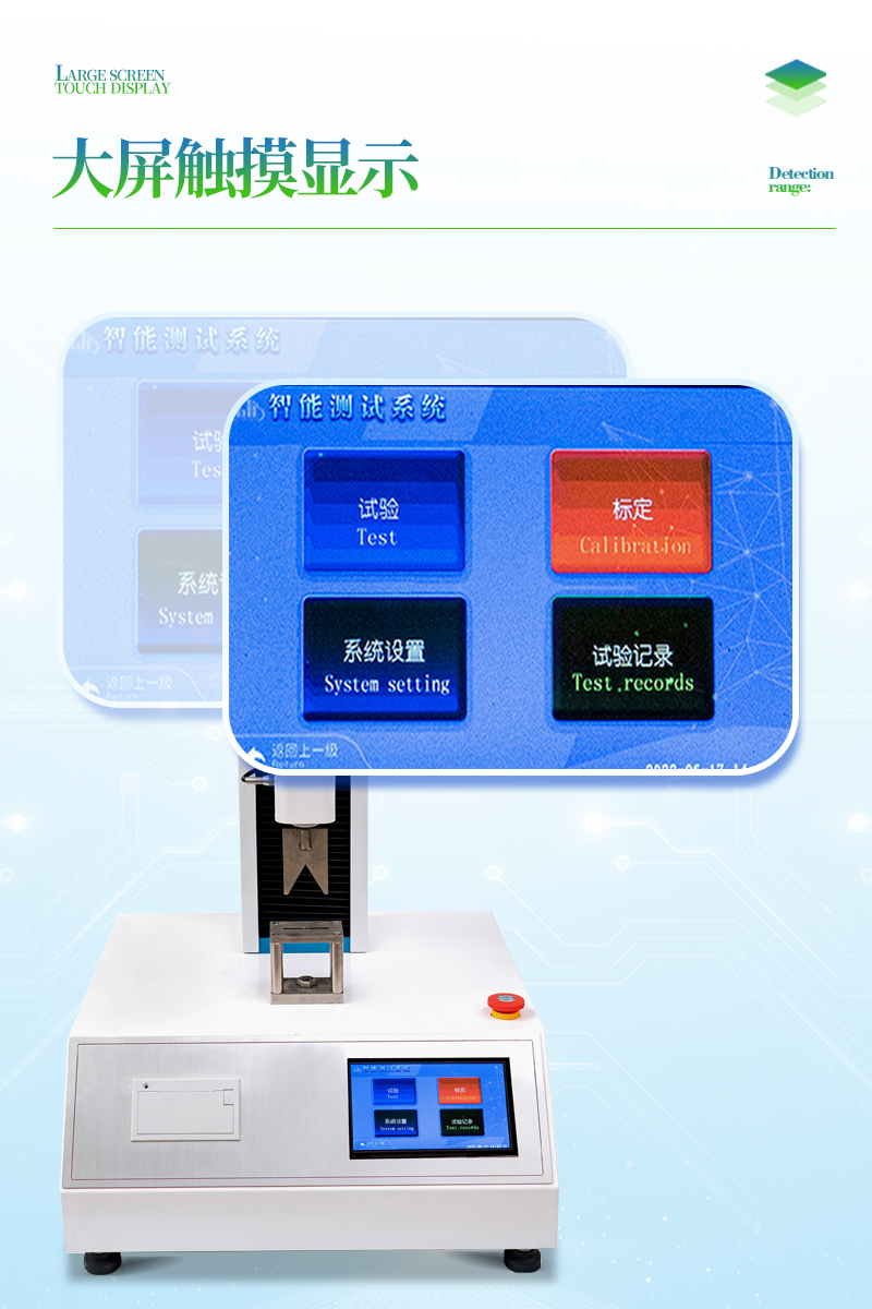 3、大觸摸屏中文顯示,友好人機界面操作。全自動完成測試。操作方便,具有測試數(shù)據(jù)統(tǒng)計處理功能,微型打印機輸出。