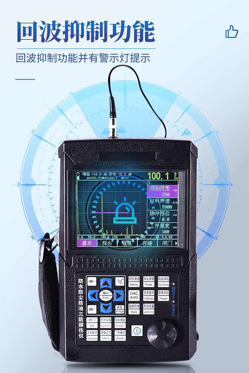 ● 真正的三防設(shè)計,可以保障用戶在復雜的現(xiàn)場和野外不受雨水、油污、粉塵等的侵蝕,讓探傷儀的使用壽命大大延長
